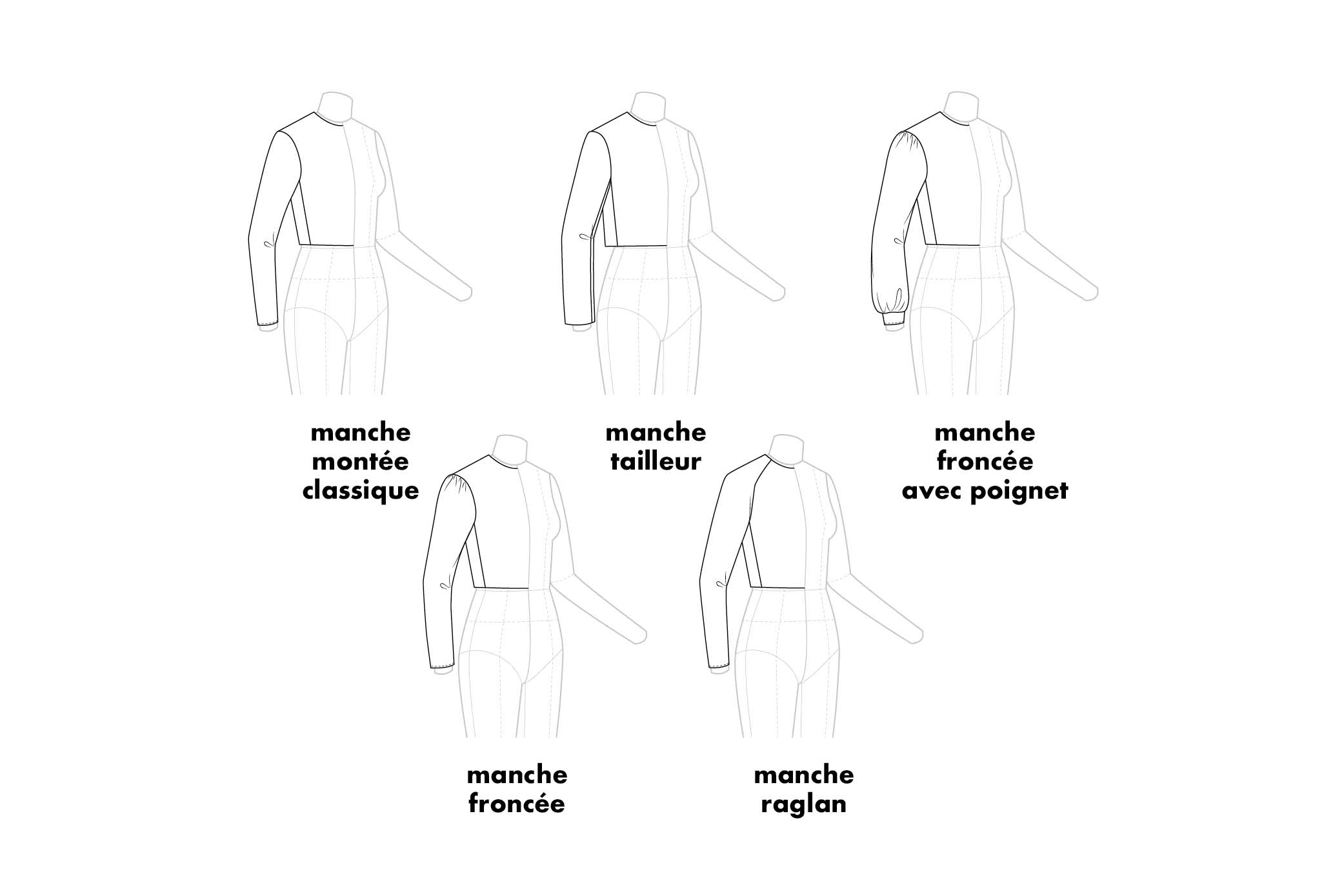 Léger excédent de tissu sur la tête de manche, qui doit être résorbé lors du montage pour épouser la forme de l’épaule sans créer de plis.