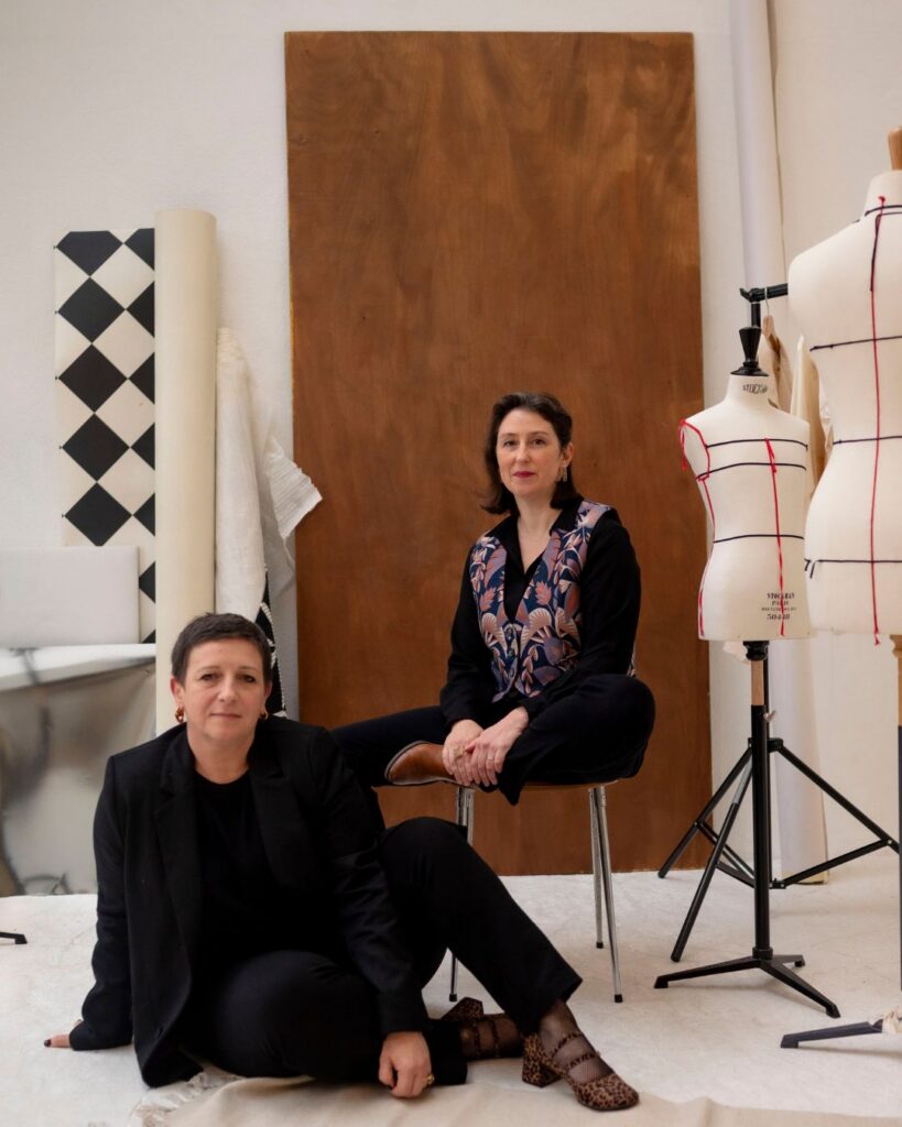 Et pourtant. Très vite, ce hasard a pris tout son sens. Car ce moment, simple en apparence, dessinait déjà la suite de notre vie professionnelle. Aujourd’hui, sur cette photo, Aurore porte un gilet tailleur, et Marie, la veste industrielle, réalisées grâce aux cours tailleur Artesane. Deux pièces et une même envie : créer des vêtements qui nous ressemblent et dans lesquels on se sent fortes, alignées et fières. De cette rencontre est née une collaboration professionnelle… Puis bien plus encore. Des heures à coudre, à échanger, à douter parfois, à rire souvent. Et surtout une vision commune : transmettre, partager, et faire de la couture un espace de confiance et de liberté. C’est ainsi qu’est née La Fabrique Couture, notre salle de cours. Un lieu vivant et bienveillant, où l’on apprend, où l’on ose, et où chaque création raconte une histoire. »